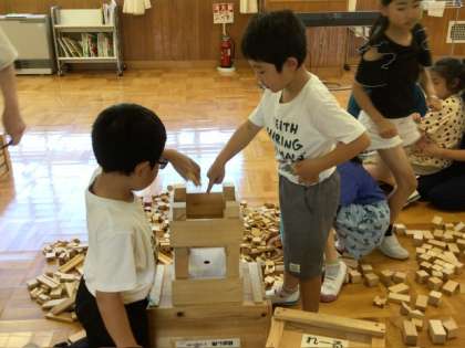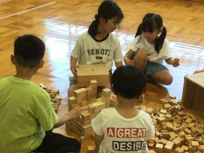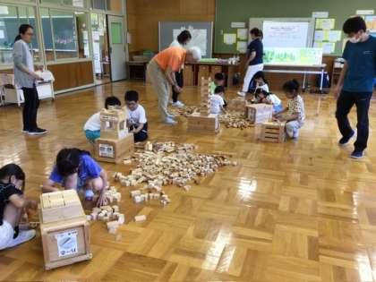 6月18日 エコット出前授業 公開日 2025/06/18 更新日 2025/06/18 各学年から 1、2年生がエコットの出前授業に参加しました。 「かんばつってなんだろう」という学習は、間伐材を使った積み木で遊び、間伐の大事さを知るというものです。用意されたたくさんの積み木を使って好きなものを作る1、2年生はとても楽しそうでした。