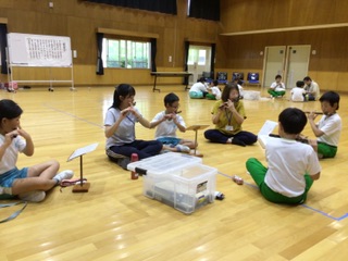 今日の雅楽練習は、パート練習を中心に行いました。6年生の子が3年生の子に音の出し方や楽譜の見方を優しく教えてあげる姿がたくさん見られました。