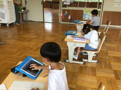 1年生は、生活科で育てているミニトマトの観察記録を書いています。この後の発表会も上手にできたでしょうね。