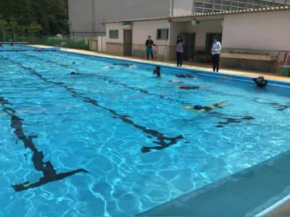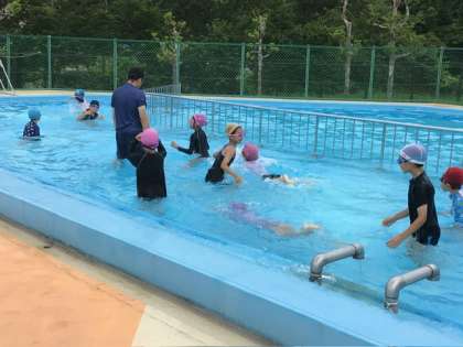 じゃぶじゃぶコースは、鬼ごっこや輪くぐりなどで、顔を水につけることに慣れました。