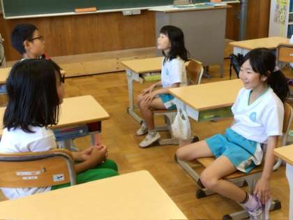 朝のキラキラタイムの様子です。3、4年生の教室ではチェンジトーク、5、6年生の教室ではアドジャンをしていました。5、6年生の教室では上手にコミュニケーションできている班の様子を全員で見て学んでいました。