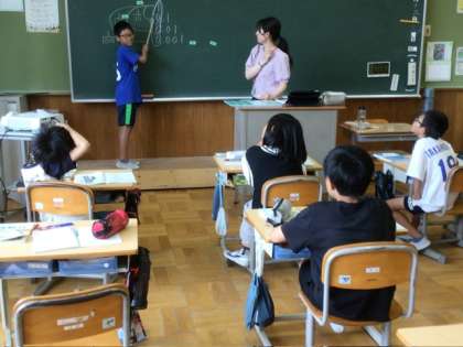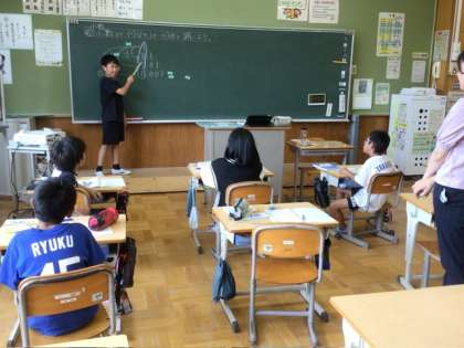 4年生の算数の授業では、小数を学習しています。みんなにわかりやすいように、工夫して自分の考えを説明している様子が見られました。