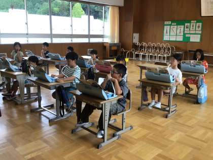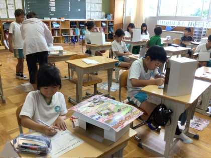 1、2年生の音楽では、鍵盤ハーモニカで上手に「かっこう」を演奏する様子が見られました。3、4年生の図工では、オリジナルの箱作りをします。みんな、どんなデザインにしようか考えていました。「お金を入れる」「文ぼう具を入れる」と使い方もオリジナリティがあります。