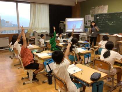 3、4年生は理科「月の位置について考えよう」です。挙手が多く、活気がありました。