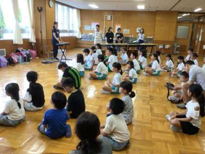 まず、1、2年生も一緒に今様の練習をしました。暑いので1階ワークスペースでやりましたが、歌声がよく響いていました。