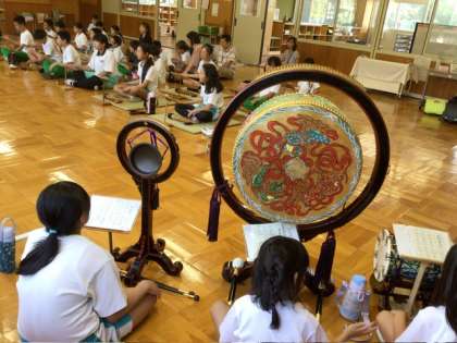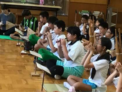 管別のあと合奏をしました。ここでも唱歌をしてから合奏してテンポをそろえていきました。また、龍笛と篳篥の音をお互い聴き合うために、向かい合わせで練習する場面もありました。