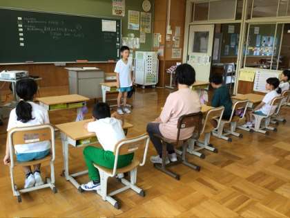 9月10日 授業の様子 公開日 2025/09/10 更新日 2025/09/10 各学年から 2年生はキラキラトークで、みんなの前でテーマに沿って発表をしていました。発表を聞いてから、その内容についてのクイズがあります。よく聞いて答えられていました。 3、4年生は道徳で「ぼくの草取り体験」の読み物を通して、学校の係活動や、家での役割などを果たすことの大切さについて考えていました。 1年生は算数で「なんじですか」、時計の読み方を学習しています。意見もしっかり言えていました。