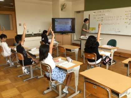 9月11日 授業の様子2 公開日 2025/09/11 更新日 2025/09/11 各学年から 5、6年生の少人数算数の様子です。5年生は公約数の求め方を学び、6年生はデータの特徴を表す値について学んでいました。また、校内には、5、6年生が図工の時間に作った「笑顔になるしかけ」がお目見えしました。みんなで安全に、気持ちよく生活が送れそうです。