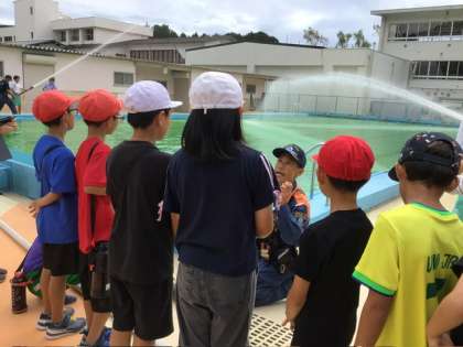 3、4年生が中学校の防災出前授業(放水訓練など)を特別に見学させていただきました。中学生が長い消火ホースを素早く組み立てる様子や、重いホースをしっかり支えて放水する様子を見て驚いていました。来週、3、4年生は、近くの消防署に社会科「わたしたちの安全を守る人たち」の学習で行きます。それと合わせていい勉強になりました。