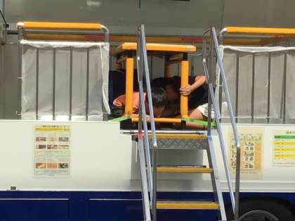 その後、煙道訓練や地震を体験できる車に順番に乗り、消防署の方のご指導を受けました。地震や火災などの緊急の場合に、どう命を守るか、考えるきっかけになったと感じます。