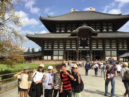 修学旅行10 公開日 2025/10/01 更新日 2025/10/01 各学年から 大きな大仏殿です。奈良時代の建築物、美しいです。しっかり2列で並んで大仏殿の前まで来ることができました。ガイドさんの説明に耳を傾けました。