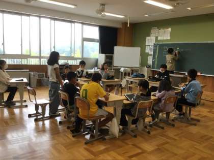 5、6年生は前期の係活動を振り返る話し合いをしていました。司会も書記も子どもが務め、自分たちの手で話し合いを進める姿、高学年として頼もしいです。