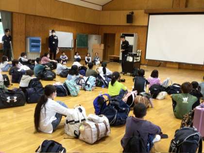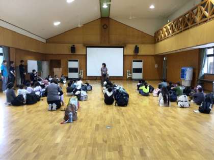 10月16日 キャンプ入所式 公開日 2025/10/16 更新日 2025/10/16 各学年から 3校が野外センターに到着し、入所式を行いました。 代表の校長先生のお話、所長さんのお話を聞き、オリエンテーションでセンターの生活のルールを確認しました。