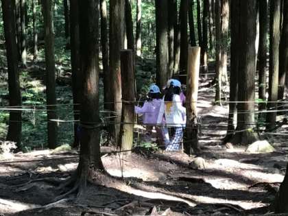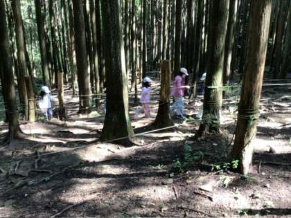 アスレチックエリアに登ってきました。まずは森のめいろです。