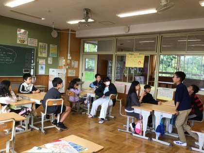 10月20日 話す、聞く 公開日 2025/10/20 更新日 2025/10/20 各学年から 5、6年生の教室の黒板には、朝、「6年生 あいさつチャレンジ」というポスターが貼ってありました。5年生がキャンプに行っている間に、自分たちで考えたそうです。さっそく、このことを5年生に説明して、質問を受ける活動を班ごとで行っていました。楽しみです。 3年生の朝の会でのクイズの様子です。盛り上がっていました。 どこの教室でも、話している子の目を見て聞く、ということを意識しています。