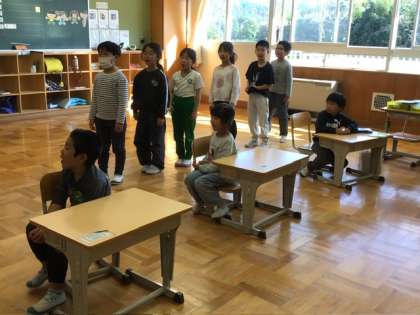 みんなで群読をする詩も、事前に各学級で練習しました。写真は1、2年生の練習の様子です。
