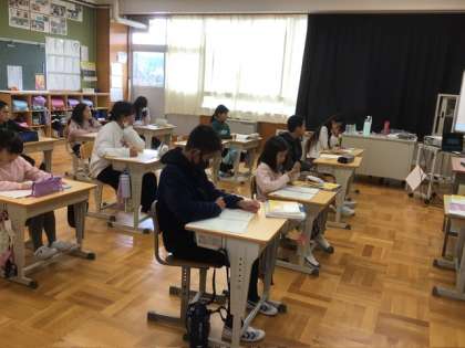 11月18日 学芸会下見会 公開日 2025/11/18 更新日 2025/11/18 各学年から 今日から下見会です。今日は5、6年生と1、2年生でした。みんなとても上手に仕上げてきています。5、6年生は下見の後に、ビデオで自分の演技を振り返っていました。台本に書き込む様子が真剣そのものです。