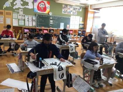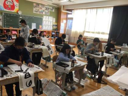 5、6年生の書写の授業は、おしゃべりがなく静かに落ち着いた中でみんな練習しています。納得いく字は書けたでしょうか。