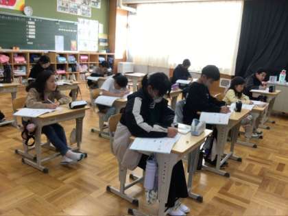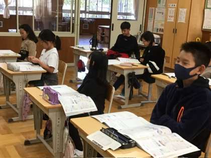 5、6年生の教室は家庭科です。何やら着ている服の内側を見ている子がちらほら…と思ったら、洗濯の表示を確認していました。