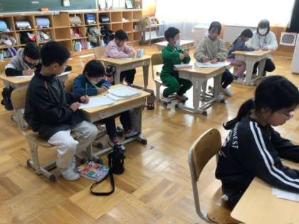 12月10日 校外学習のまとめ 公開日 2025/12/10 更新日 2025/12/10 各学年から 1、2年生が地域のパン屋さんに行き、インタビューしてきました。 学校に帰ってきてから、インタビューしたことに対してどんな答えだったかを確かめ、記録しました。2年生が1年生の記録を助ける様子も見られました。