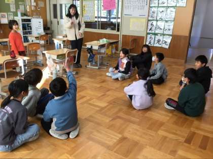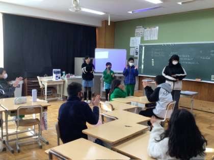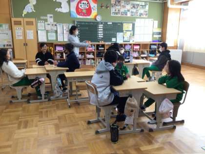 12月15日 朝のキラキラトーク 公開日 2025/12/15 更新日 2025/12/15 各学年から 5、6年の教室では、土日にしたことを話題に班で関わり合った後に、全体の前で班から1人ずつ出て発表しました。それをさらにまとめる役もいました。友達の言ったことをよく聞いています。 3、4年の教室では、前に出た友達が心で思っている物を、他の子たちが質問しながら当てるということをしていました。ここでも班で相談しながら質問していました。関わり合いの場面を意図的に設定しています。