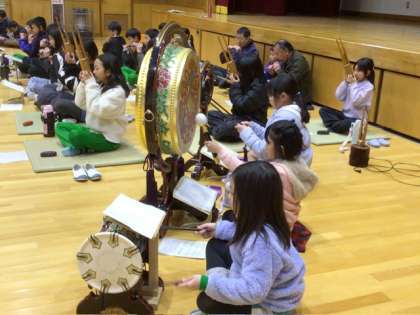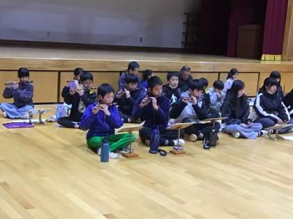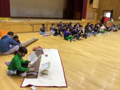 12月15日 雅楽練習 公開日 2025/12/15 更新日 2025/12/15 各学年から 今日は、学芸会後初めての雅楽練習です。 久しぶりの楽器の感触を確かめながら演奏しました。高学年のこどもたちが管別でよく引っ張っていました。