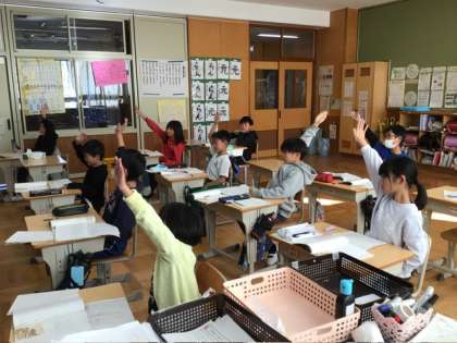 ペアで考えたことを共有して、自信をつけているようです。よく手が挙がっています。また友達の意見を聞く時も、その子の方に体を向けて聞いています。