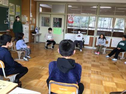 5、6年生は、輪になって何やら推理系のゲームをしていました。答えに行き着くまでの、腹の探り合いみたいな時間が楽しそうでした。