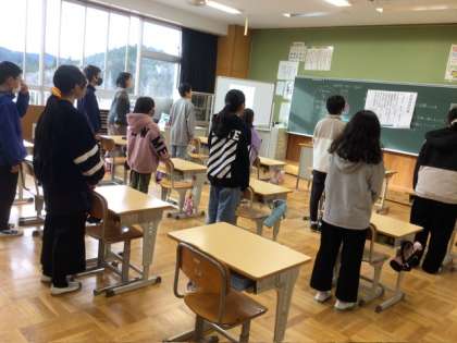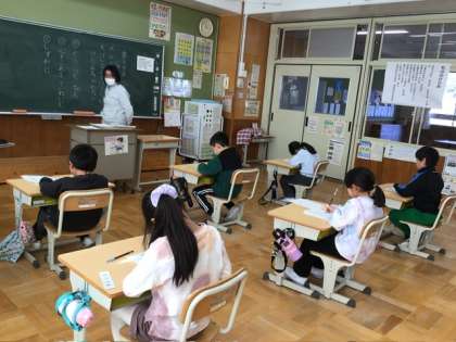学校が始まり、子どもたちが元気に登校してきました。久しぶりの教室では、どの学級でも「もののけ姫」の歌の練習をスタートさせました。