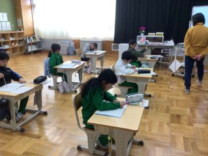 1年生の算数では、1から10、10から20、20から30、というように数字を書く練習をしていました。みんな「書けるよ」とノートに向かっています。
