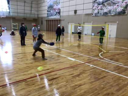 3、4年生は体育でテニピンをしていました。今日は、1対1のゲームでしたが、楽しそうにやっている様子が見られました。