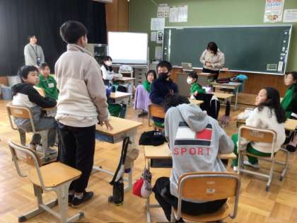 今日、5、6年生の教室では、講師さんを招いて がん教育の授業が行われました。講師さんは、がんの治療を8年前に終えたそうです。その中で多くのつらいことを経験されましたが、だからこそ得た「つらさの乗り越え方」を話してくださいました。明るい講師さんの話にみんな引き込まれて聞いていました。講話を終えて帰られる時間になっても、子どもたちが講師さんの周りをとり囲んで離れない…よっぽど心に残ったのでしょう。ありがとうございました。