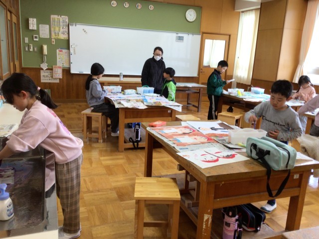 3月2日 授業の様子 公開日 2026/03/02 更新日 2026/03/02 各学年から 1、2年生は図工で「がんばったこと」の絵を画用紙にかいています。運動会、勉強、ドッジボール。その子なりの「がんばった」場面が見られました。絵の具の使い方も上手になっていました。