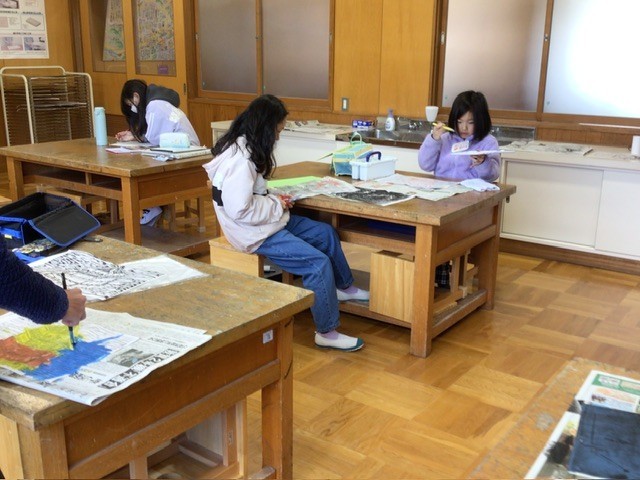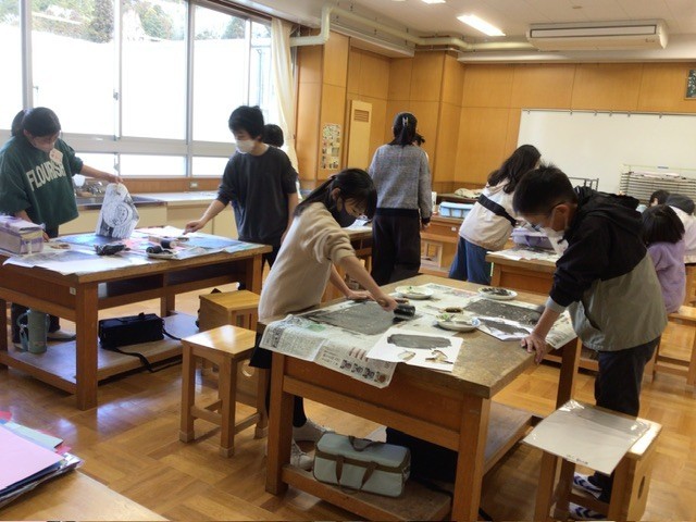 3月10日 授業の様子 公開日 2026/03/10 更新日 2026/03/10 各学年から 5、6年生が図工で版画を作っていました。テーマは、1年間で心に残ったこと。6年生は修学旅行のお寺や鹿を、5年生はキャンプファイヤーの様子をモチーフにした作品が多かったです。中には、ダルマを描いた子も。これは教室に掲示してある級訓に関係するキャラクターです。七転び八起きの年になったでしょうか。