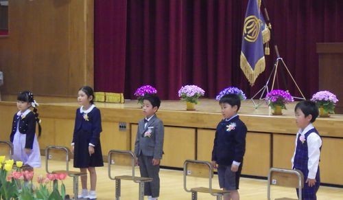 今年の新入生は5人です。入場から終了まで、がんばってやり切りました。
