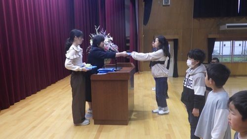 新しいタブレットを各学年の代表児童に手渡しました。豊田市から貸し出されているタブレットです。学習に大いに活用しつつ、大切に扱ってほしいと思います。代表児童の宣誓の後、情報担当の教師から使い方についての話を聞きました。