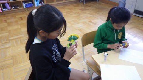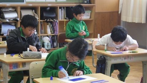 ラリージャパンで下山地区にいらっしゃる選手の方々等におもてなしの気持ちを伝えるため、下山の小中学校で手作りのミニ扇子を作ることになりました。本日の1時間目をつかい、縦割り班ごとに活動場所をわかれてミニ扇子づくりに取り組みました。制作中はどの子も扇子を完成させるためにがんばりました。高学年の子が下学年の子にやさしく声かけする姿が温かくて素敵でした。子どもたちの歓迎の気持ちが扇子を手にしたみなさんにも届きますように。