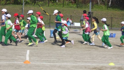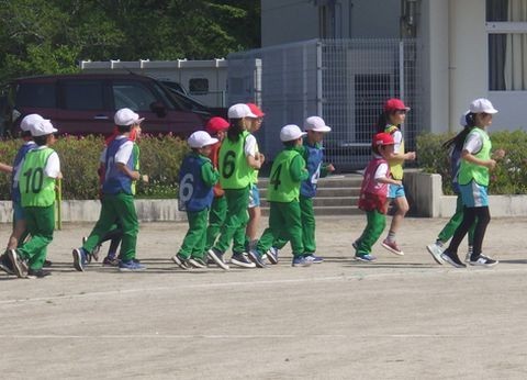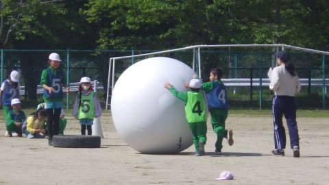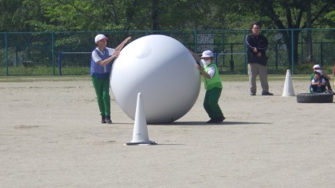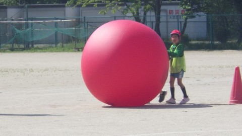 青空の下、気持ちのよい空気の中で運動会練習を行うことができました。今日は、たてわり競技「大玉」の練習です。赤白のチームに分かれて、二人一組(三人一組)になってそれぞれの大玉を転がします。初めての通し練習では、途中のコーンを回るところが難しそうでした。次回は本番(運動会当日)です。競技が盛り上がることは間違いなし!? お楽しみに。