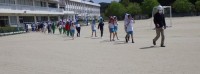 全校縦割り競技です。今年は大人の背より高い大玉を使います。 縦割りペアで大玉をコ...