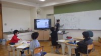算数の授業は、5年生と6年生が別々の教室で行っています。5年生は『小数のたし算や...