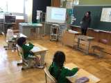 1、2年生は音楽で、いろいろな国のダンスの音楽を聴きながらリズムに乗って体を動...