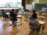 雨上がりの青空が広がりました。 5、6年生が書写の授業で、「道」という文字を...
