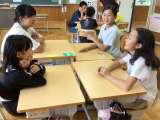 5、6年生は班ごとにカードトークに取り組んでいました。引いたカードにある話題に...