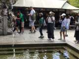 音羽の滝で水を飲んだり、手を洗ったりしていました。 お昼ご飯は、参道の梅山堂...