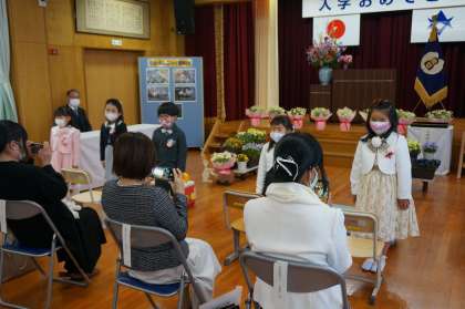 最後に、在校生が歓迎の言葉を贈りました。児童代表のSさんが、優しく語りかけるように発表し、新入生の不安を取り除くように、全員で心を込めて歓迎の想いを伝えました。最後に校歌を歌いました。