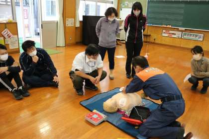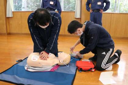 特に、子どもと大人での胸骨圧迫の仕方の違いや、AEDとの併用の仕方、コロナ禍での対応の仕方など、訓練実習しました。