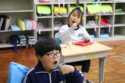 給食後のみならず、生活の中で正しい歯みがきをすることで、自分の歯を大切にしようとするとても大切な指導です。