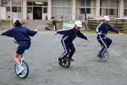 運動会種目「一輪車演技5・6年」の練習 〜発表グループで演技のアイデアを考え練習する(2)〜 5月7日(金)