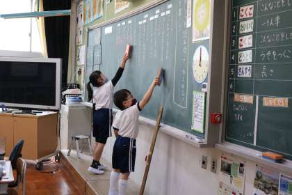 2年生が道徳の学習をしました。授業が始まる前の放課、黒板をきれいにするIさんとTさんを見かけました。気持ちよく学習がスタートできるように、教室環境を整える2人をたのもしく思いました。