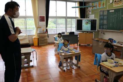 会食場所を、1年生・2年生・5・6年生は、教室。3・4年生のみ、ランチルーム。に変更しました。